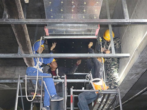 風管保溫采用保溫釘焊接保溫工藝,空調焊釘是由優質鍍鋅板加低碳鋼絲鉚制而成的,底盤直徑在30mm左右,絲經在1.8mm。長度根據巖棉板厚度不同而定。使用方法:首先將巖棉平鋪在通風管道上,然后用焊釘搶將焊釘底盤吸入,將釘尖端插入巖棉,直接焊接在管道鐵皮上。